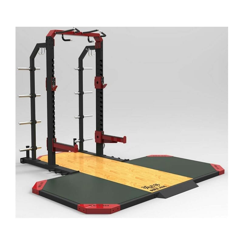 Solid løfteplattform. Løftepodium for vektløfting brukes med fordel i alle treningssentre for å markere selve vektløftingsområdet. I dette spesifikke området kan man utføre tunge markløft, knebøy og andre vektløftingsøvelser på en trygg og beskyttet måte.