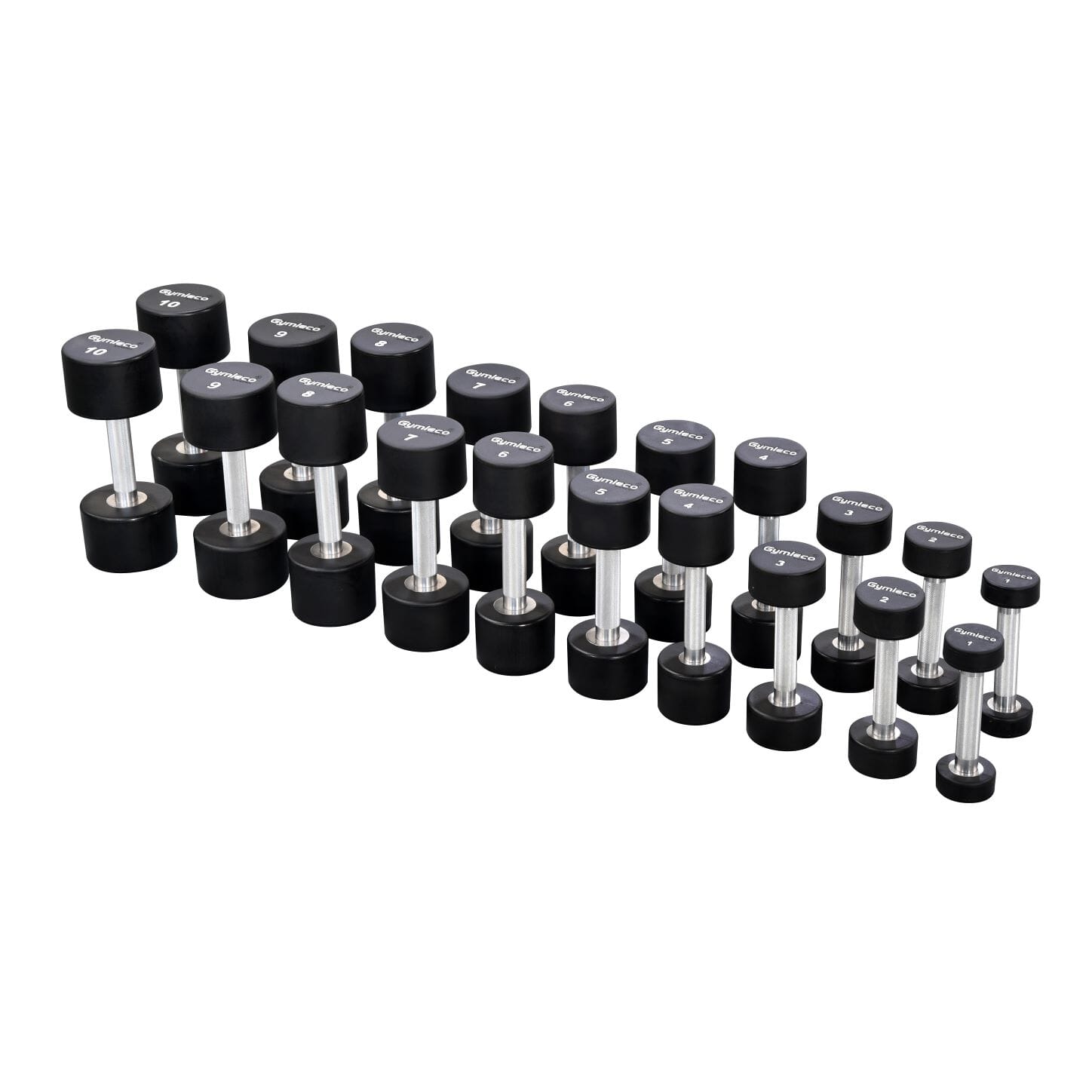 Gymlecos Polyertan manualer er perfekt for deg som leter etter kvalitetsmanualer i størrelsen fra 1-10 kg.Disse brukes i de fleste kommersielle treningssenter.Vi selger også en plassbesparende tårn rack som tar lite plass