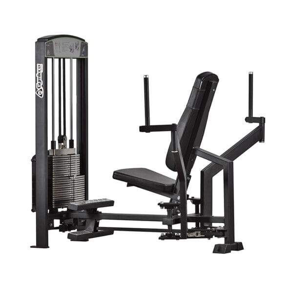 Anatomisk riktig bevegelsesvinkel mot brystmuskelen. Bra håndgrep for en behagelig bevegelse som avlaster skuldrene. Individuell belastning av armene øker bevegelsesfriheten. Justerbare håndtak gjør at den kan tilpasses alle lengder. Veldig kompakt og plassbesparende maskin takket være at armenes ledepunkt sitter under maskinen.