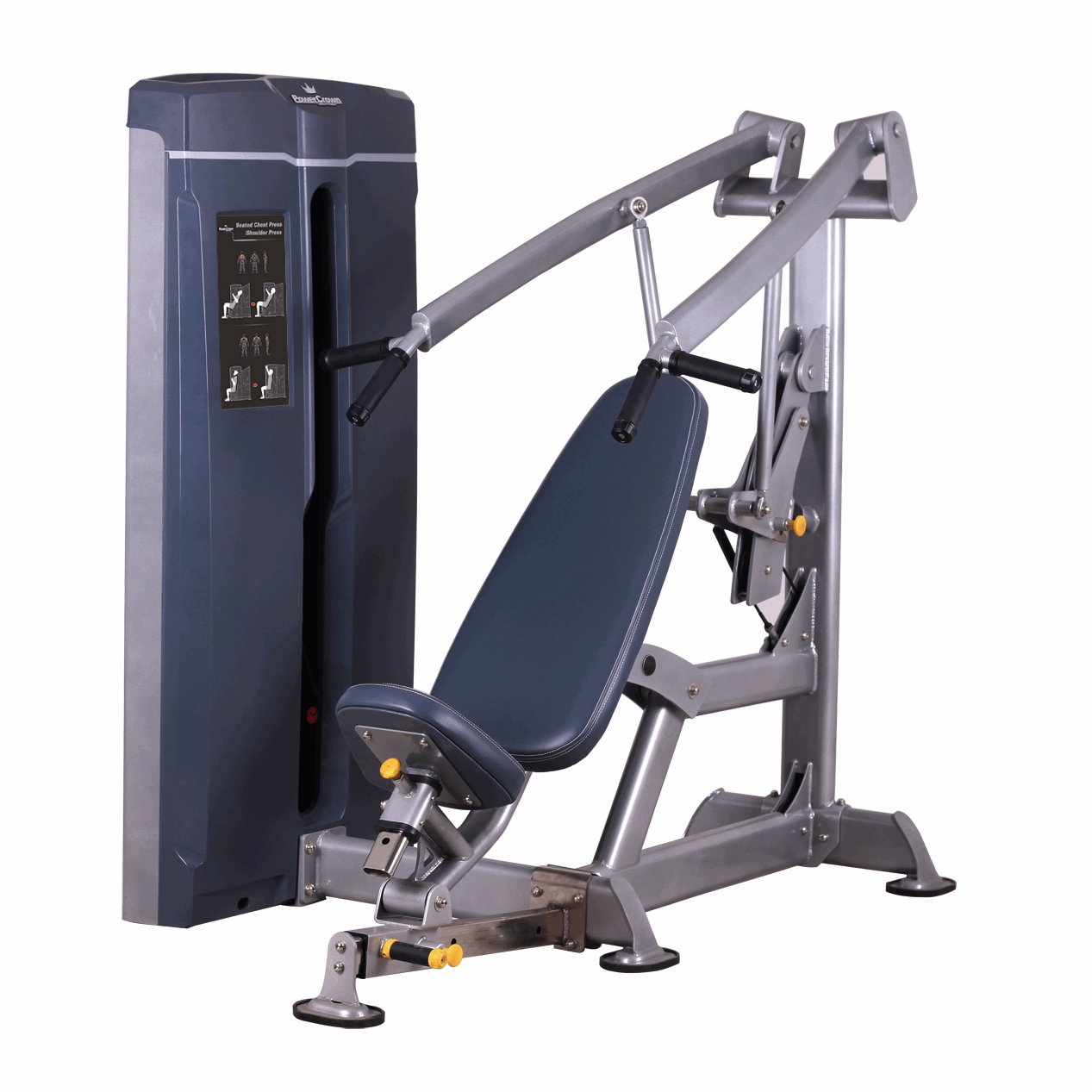 En bryst/skulderpress kombimaskin er et treningsapparat som kombinerer funksjonene for brystpress og skulderpress i én maskin. Dette gjør det mulig å trene både bryst- og skuldermusklene effektivt uten å bytte apparat. Disse maskinene er populære i treningssentre og hjemmegym på grunn av deres allsidighet og plassbesparende design. De er ideelle for både nybegynnere og erfarne treningsentusiaster som ønsker en målrettet styrketrening for overkroppen