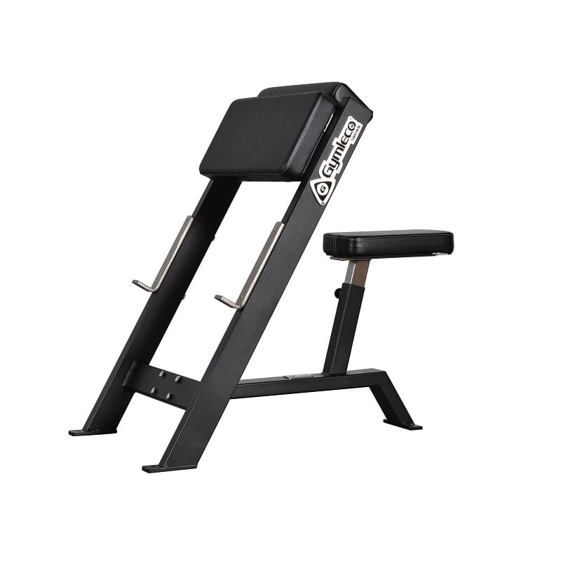 En pent designet scottbenk med doble puter i riktig vinkel for å gjøre treningen stødigere. Det er også enkelt å skifte puter. Et stangoppheng som ikke er i veien, men som fortsatt er rett ved, er inkludert.