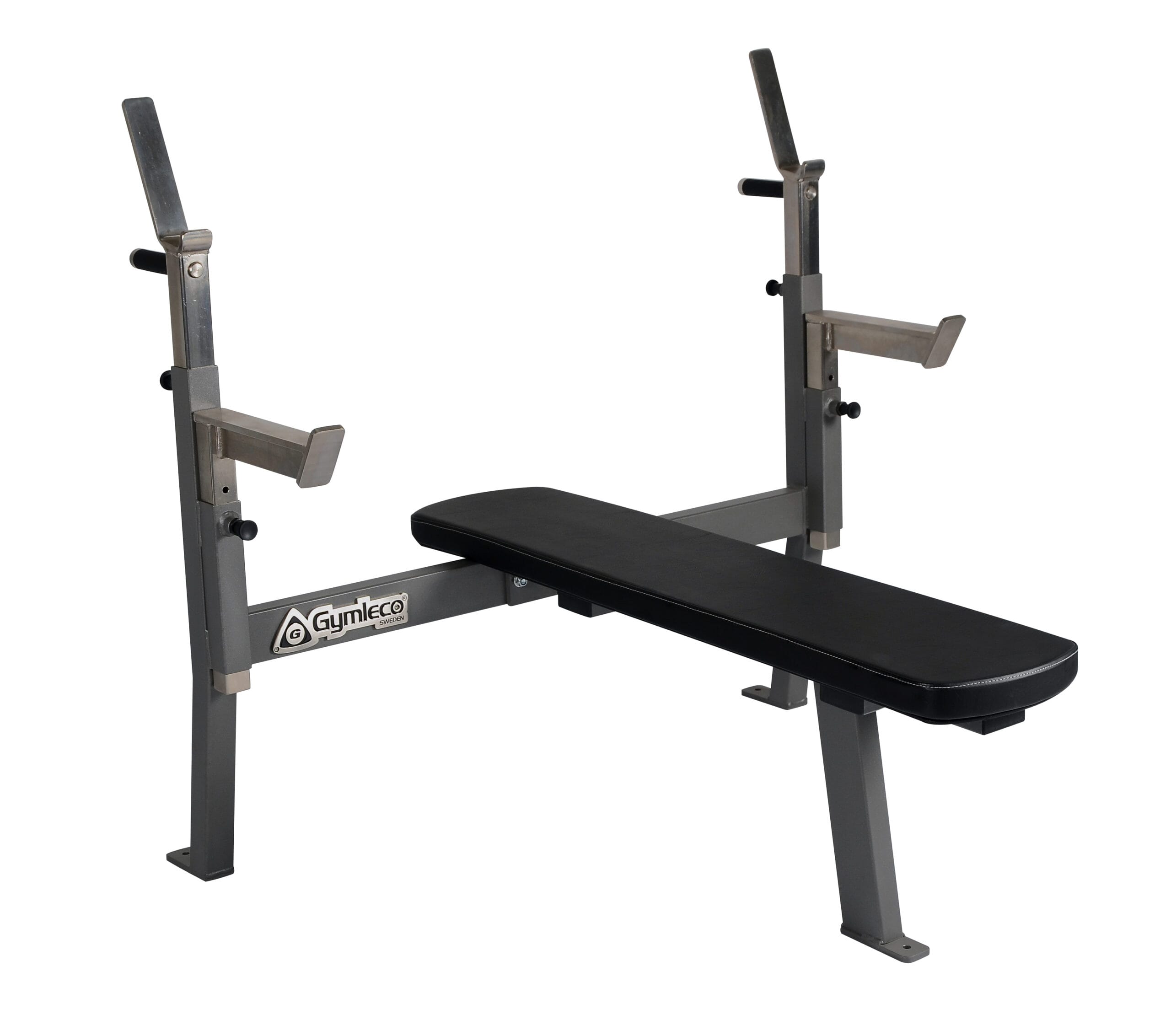 Denne benkpressen har samme, stabile konstruksjon som 122F, men med justerbart stangoppheng og sikkerhetsstopp. Robust og stabil benkpress med polstret benk av forsterket materiale som gir en behagelig trening.