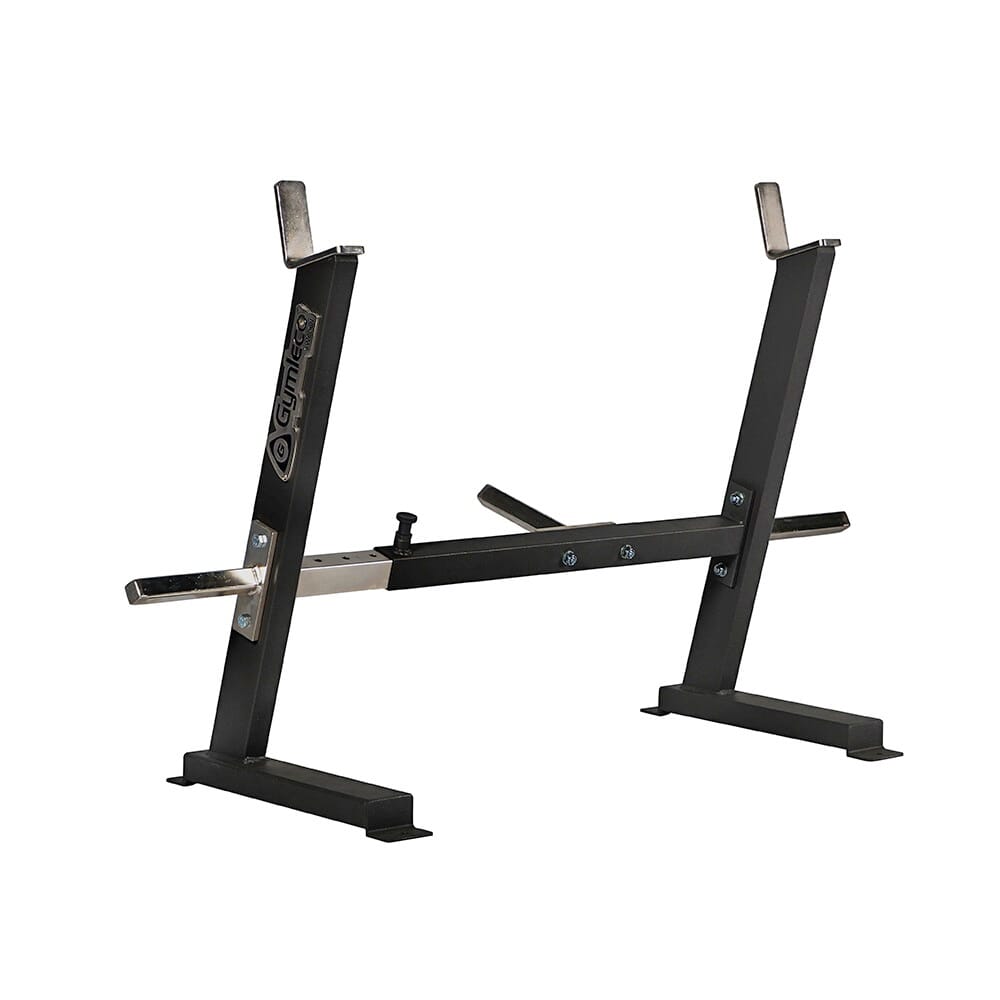 Et smart stativ for curlstang med vektoppheng for å samle alt på en plass. Takket være dette slipper man å ha curlstangen og vektene på gulvet.