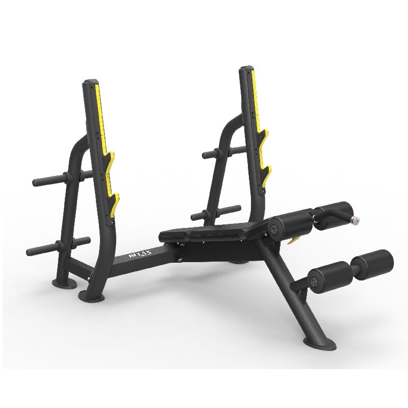 Olympisk decline benkpress med oppheng for oppbevaring av olympiske vektskiver