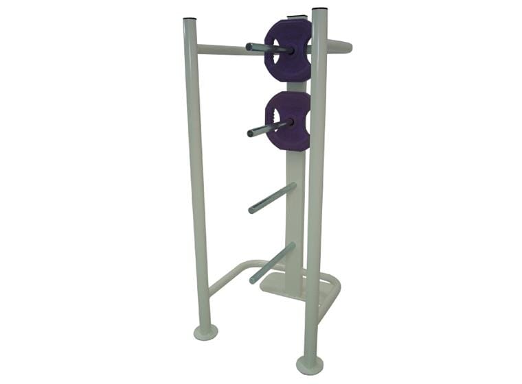En frittstående rack for oppbevaring av vekter med 30mm hull.