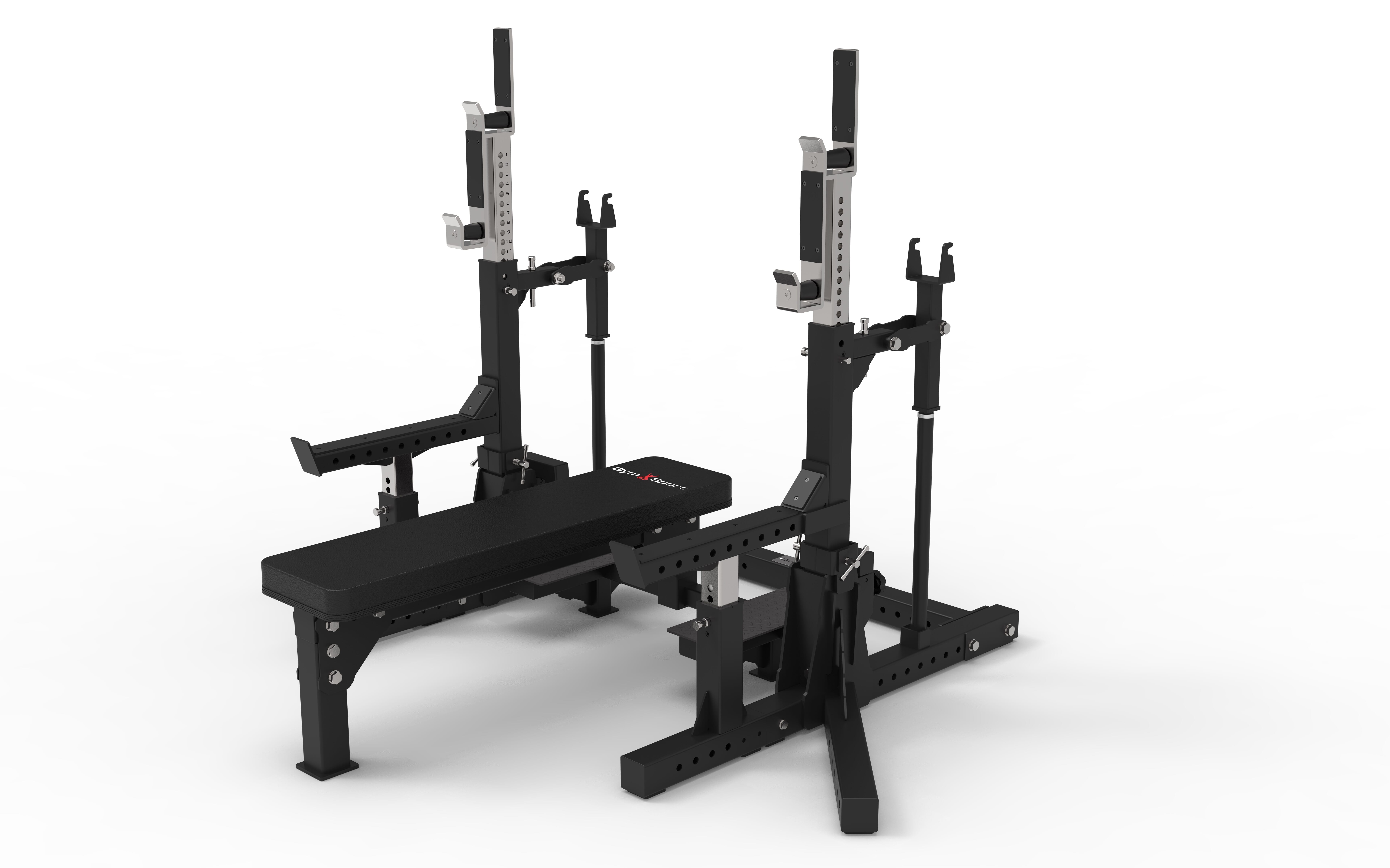 Gymsport Styrkeløftbenk er en kraftig og allsidig treningsstasjon utviklet for seriøse utøvere, treningssentre og hjemmegym. Med integrert knebøystativ, justerbare komponenter og solid konstruksjon, får du et komplett verktøy for både benkpress og knebøy – uten kompromisser.
